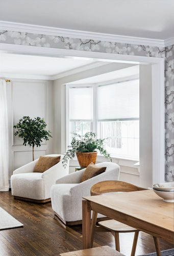A young family took the leap from city life to settle into this beautiful colonial home in Winchester. To enhance its charm and make it truly their own, we infused the space with custom woodwork, rich textures, and thoughtfully curated details. Wallpaper, paint, lighting, and furnishings all came together to create a home that feels both personal and timeless. The overall aesthetic leans into a Scandinavian coastal vibe—relaxed, modern, and effortlessly inviting.
